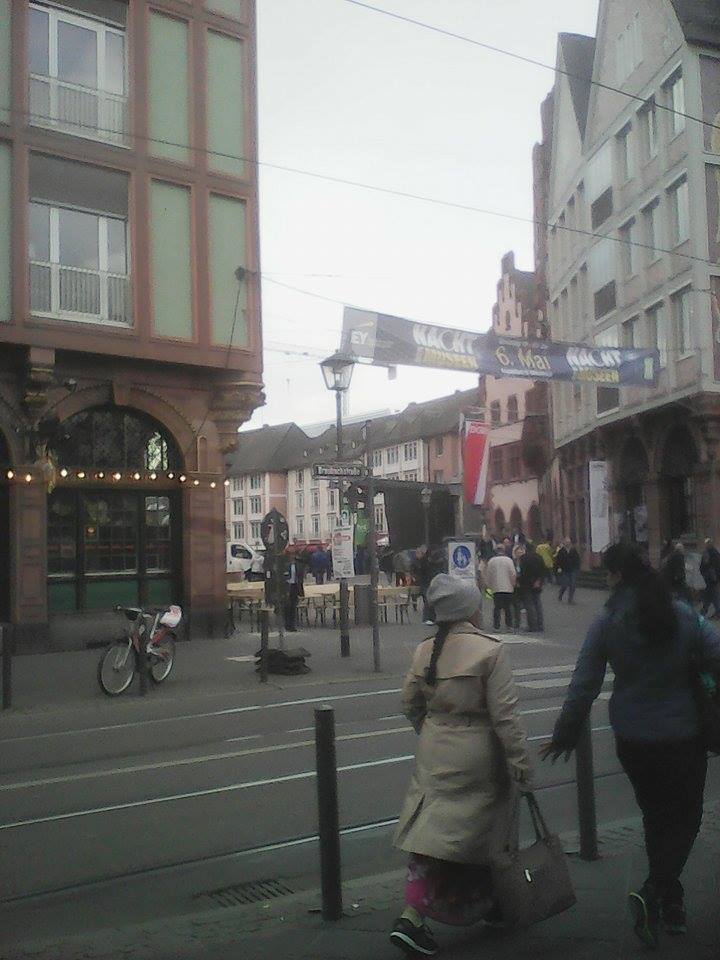 Την τελευταία μέρα του ταξιδιού μας -28 Απρίλη- αναχωρήσαμε οδικώς για τη Φρανκφούρτη. Περάσαμε τα σύνορα Γαλλίας-Γερμανίας και φτάσαμε στην πλατεία Romer, μια μικρή πλατεία όπου γίνεται φανερό το γερμανικό στυλ. Αγοράσαμε αναμνηστικά και μετά συνεχίσαμε τη βόλτα μας στην πλατεία του Αγίου Νικόλα. Η Φρανκφούρτη συνδυάζει υπερσύγχρονους γυάλινους ουρανοξύστες, ενώ στην άλλη πλευρά δεσπόζουν σοκάκια στο μεσαιωνικό κέντρο και τη συνοικία Sachsenhausen.