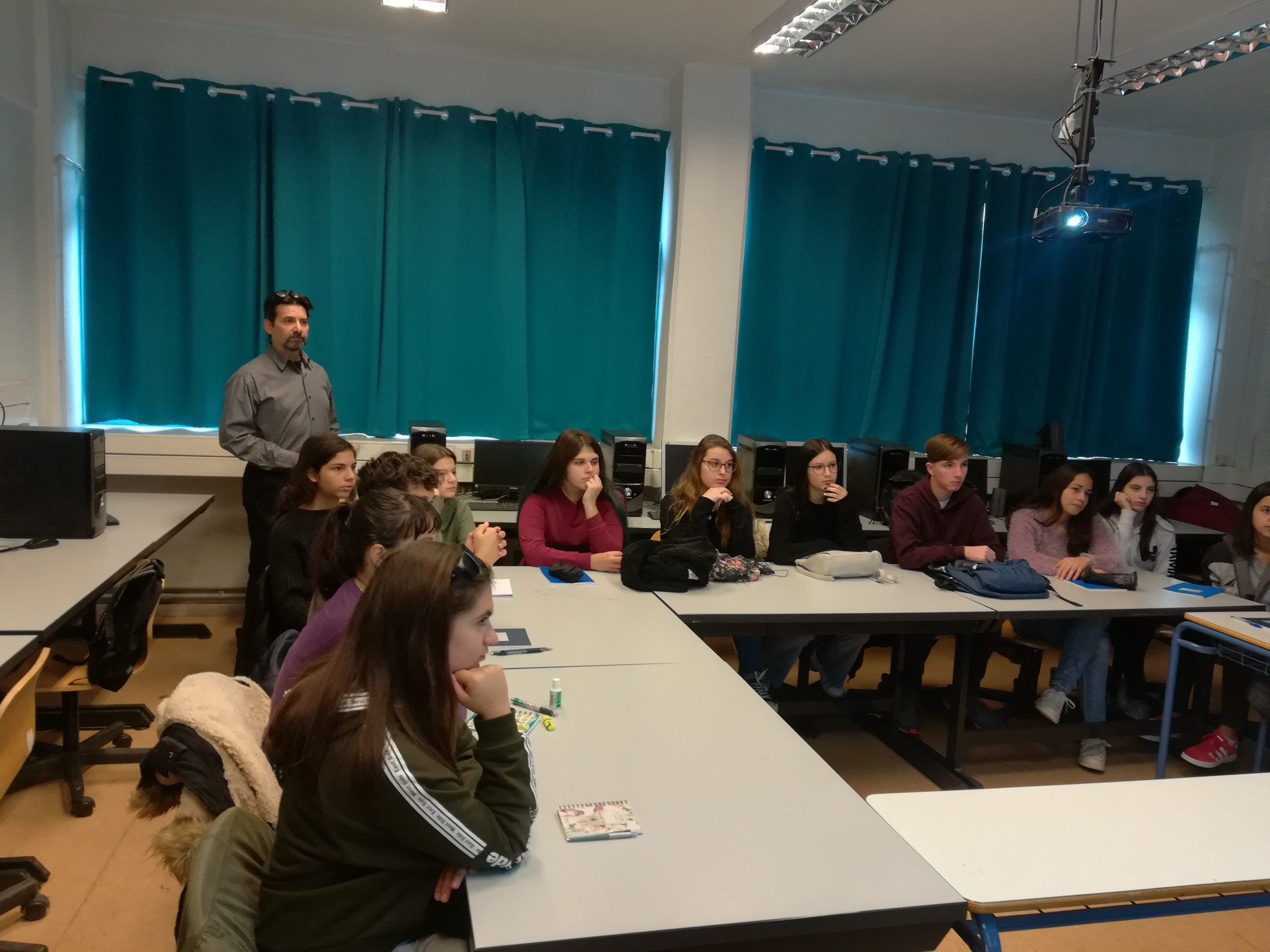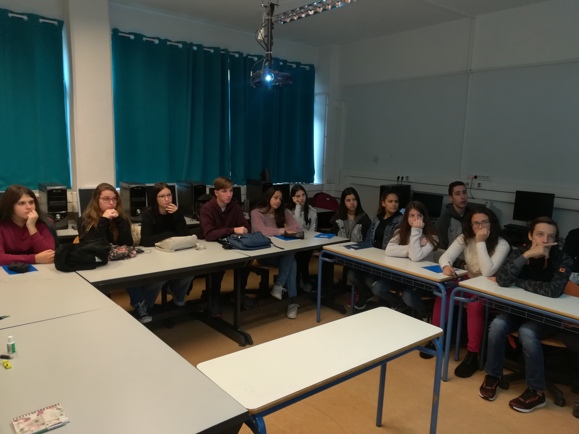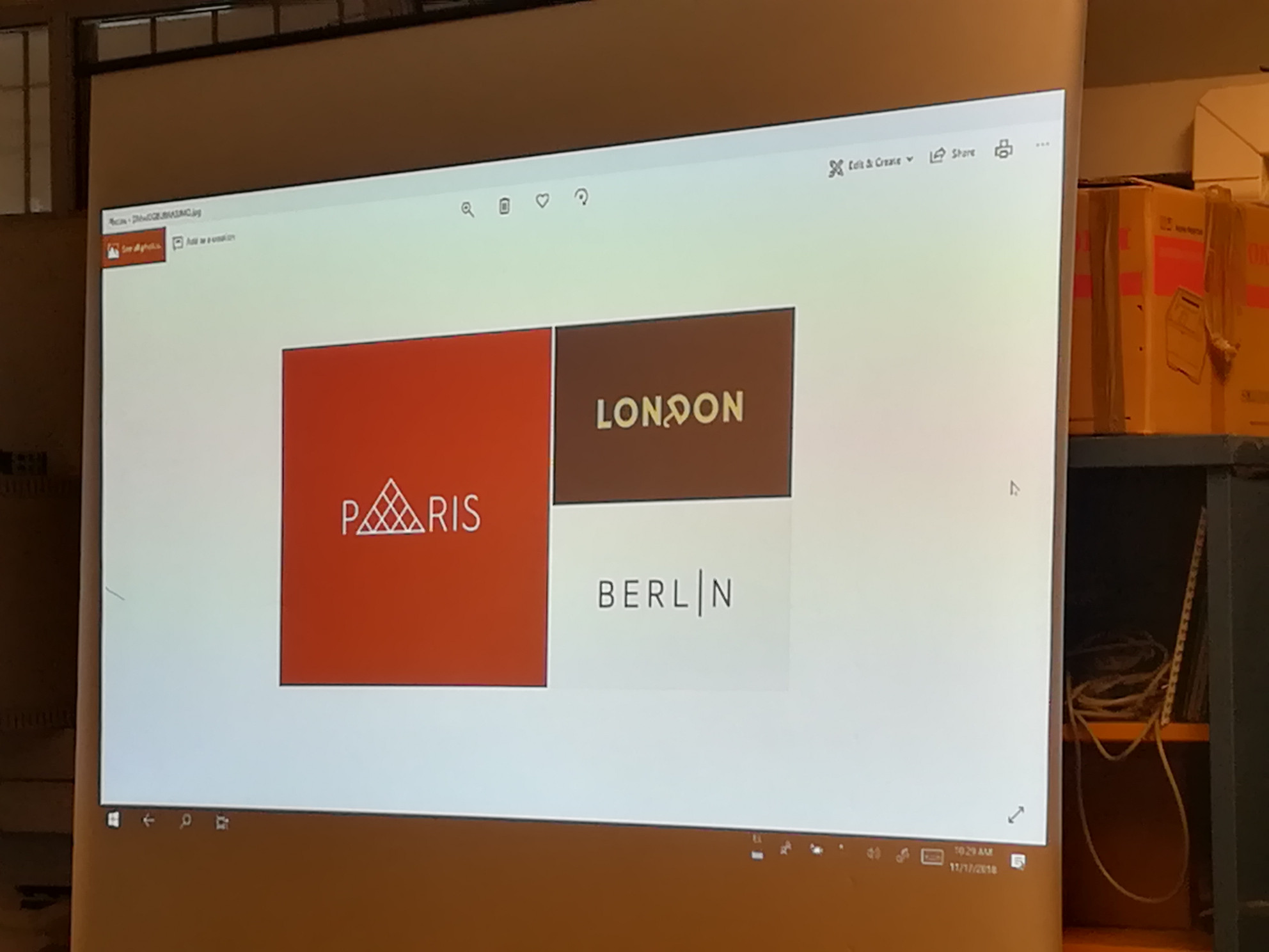 Στη συνέχεια στις 28 Νοέμβρη 2018 η ομάδα μαθητών Erasmus + επισκέφτηκε το εργαστήριο Πληροφορικής του ΕΠΑΛ Ζωγράφου προκειμένου να εκπονήσουν την κατασκευή του λογότυπου στο πλαίσιο της θεματικής ενότητας Graphic Design με τη χρήση του κατάλληλου λογισμικού σε συνεργασία με καθηγήτριες πληροφορικής του ΕΠΑΛ Ζωγράφου.