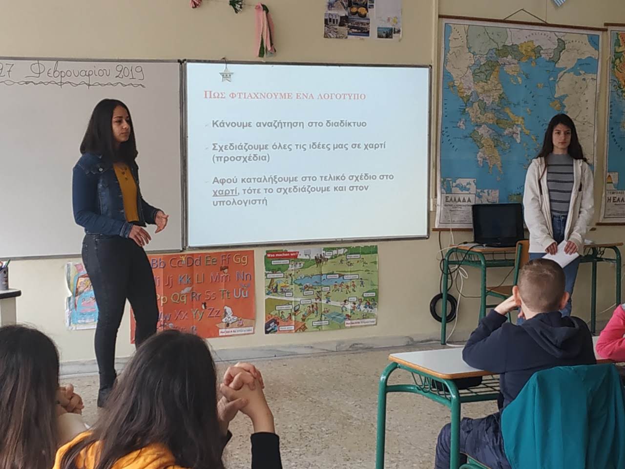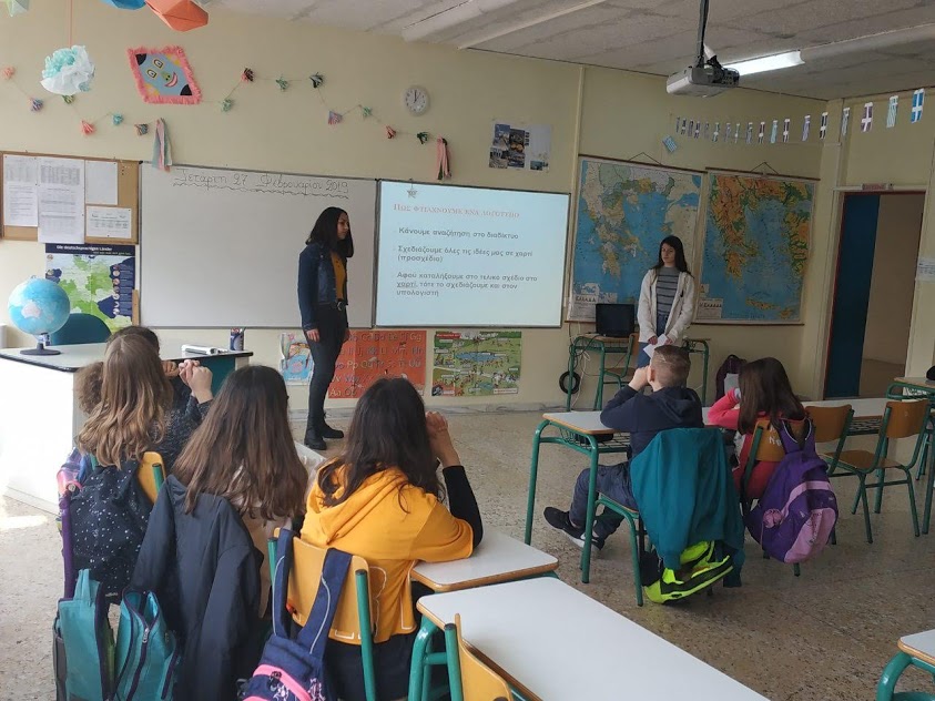 Στις 27 Φεβρουαρίου 2019 οι μαθήτριες Βασιλική Ζευγολατάκου και Βασιλεία Γεωργοπούλου από το τμήμα Α1 επισκέφτηκαν το 12Ο Δημοτικό Σχολείο Ζωγράφου και δίδαξαν το μάθημα της κατασκευής λογοτύπου σε μαθητές της 6ης Τάξης Δημοτικού στο πλαίσιο του προγράμματος Erasmus+. Αρχικά, εξήγησαν στους μαθητές του Δημοτικού τι είναι λογότυπο, ποια είναι τα βασικά χαρακτηριστικά που πρέπει να έχει ένα λογότυπο για να είναι πετυχημένο και στο τέλος, έδειξαν στα παιδιά δείγματα γνωστών λογότυπων. Οι μαθητές μας έγιναν δεκτοί με ενθουσιασμό τόσο από τους μαθητές του Δημοτικού όσο και από τον Δάσκαλο της τάξης αλλά και τη Διεύθυνση του Σχολείου. Τους ευχαριστούμε θερμά για τη φιλοξενία τους.