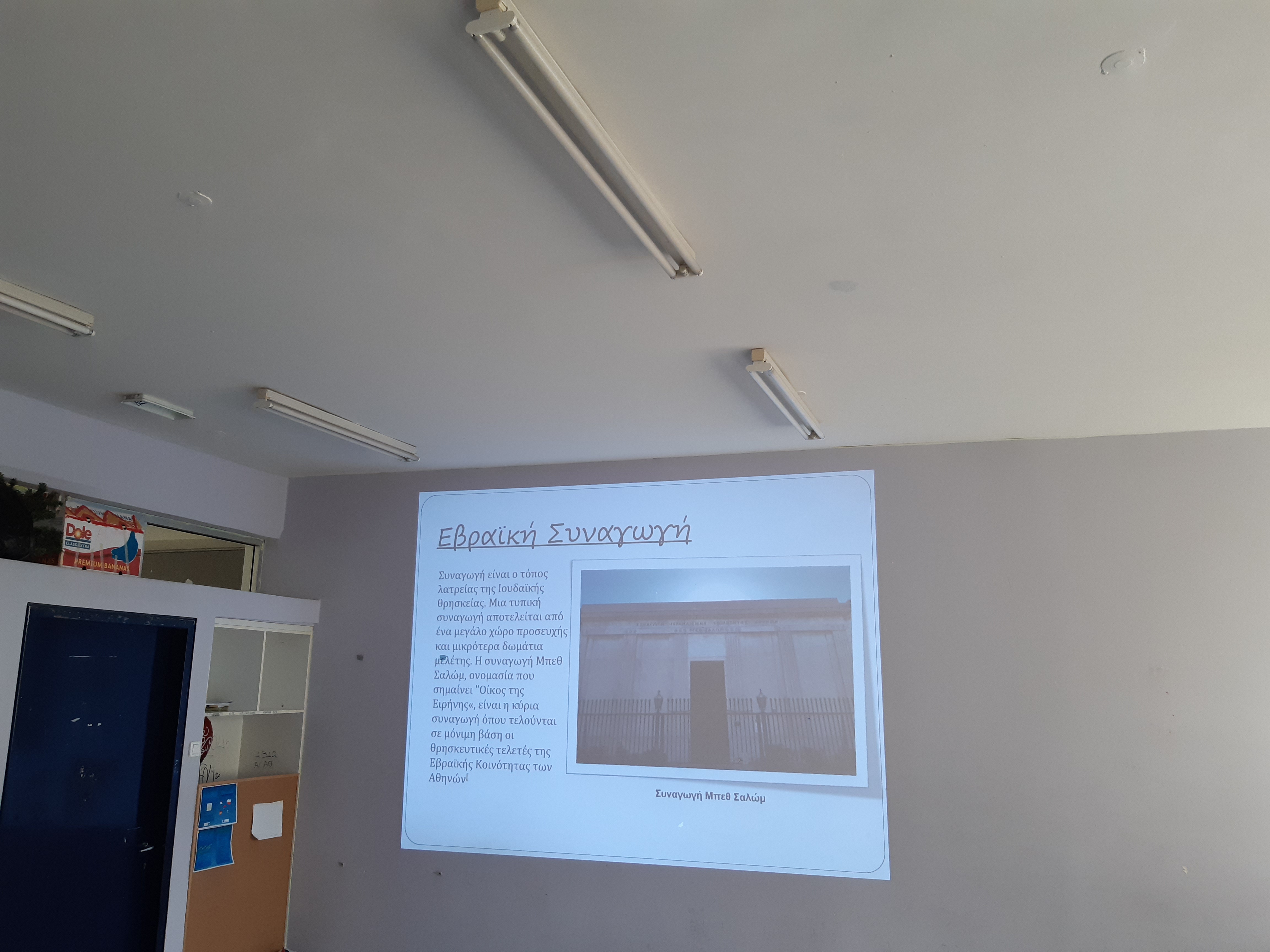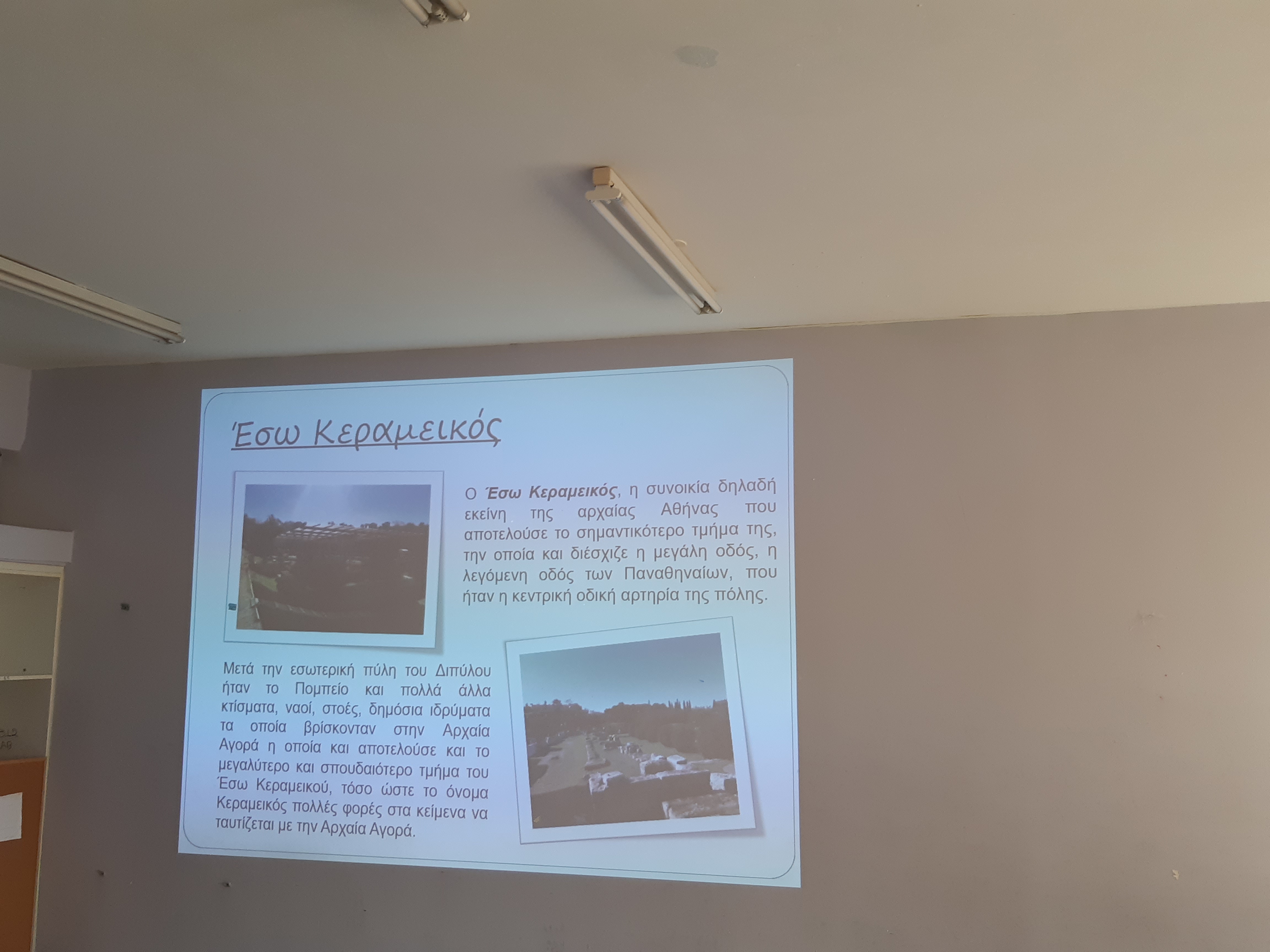 Οι μαθήτριες ενημέρωσαν τους συμμαθητές τους για την ξενάγησή τους στον χώρο της Εβραϊκής Συναγωγής καθώς και στον αρχαιολογικό χώρο και το Μουσείο του Κεραμεικού στην Αθήνα με την καθοδήγηση της ξεναγού, κας Βαλένας Κέφαλου.