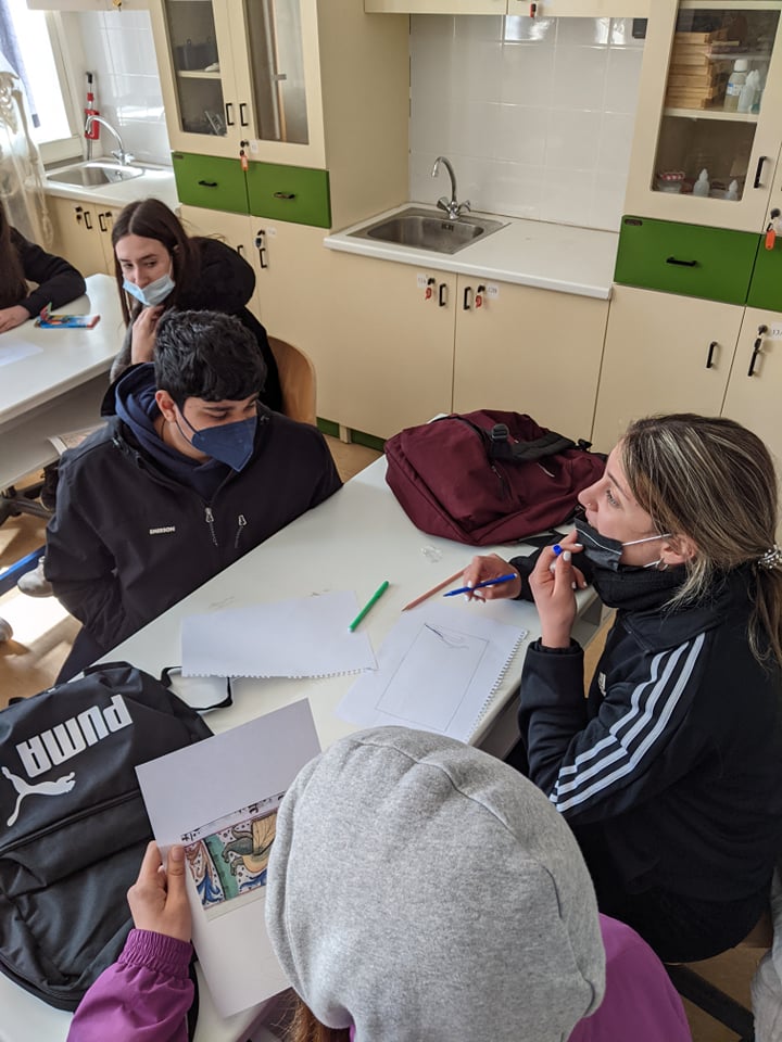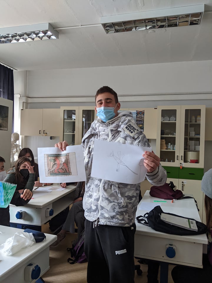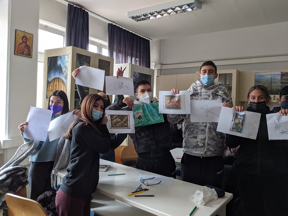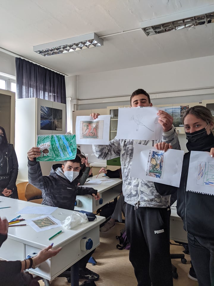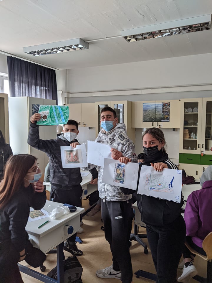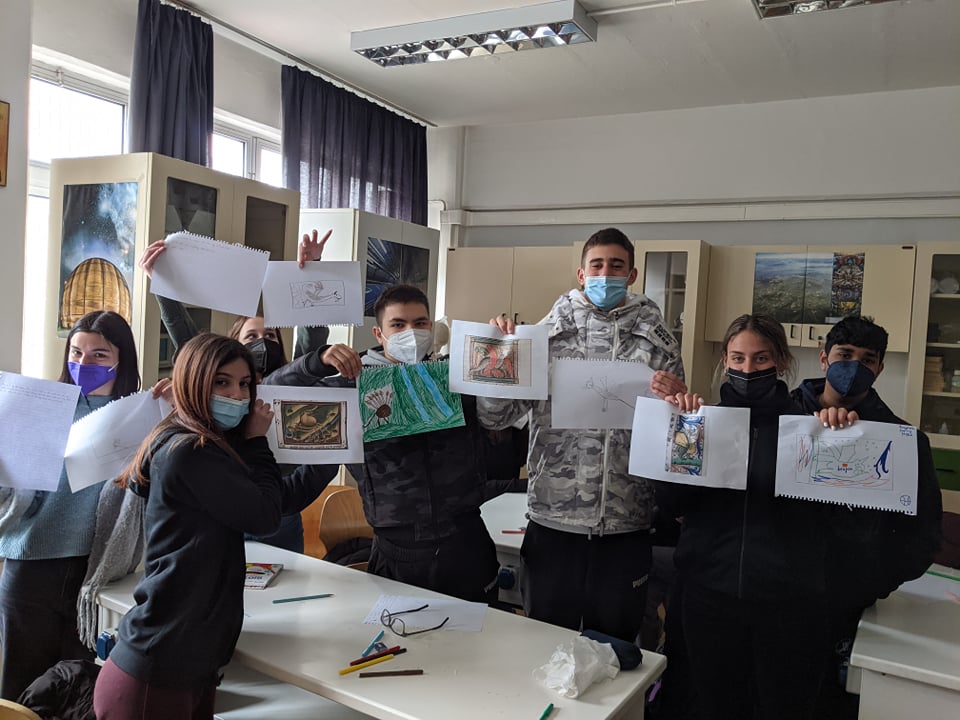 Στη συνέχεια 4 μαθητές και μαθήτριες από την ομάδα Erasmus+ δίδαξαν το συγκεκριμένο σενάριο με έμφαση στη δραστηριότητα Picture Dictation στο τμήμα Α1 στο μάθημα των Αγγλικών.