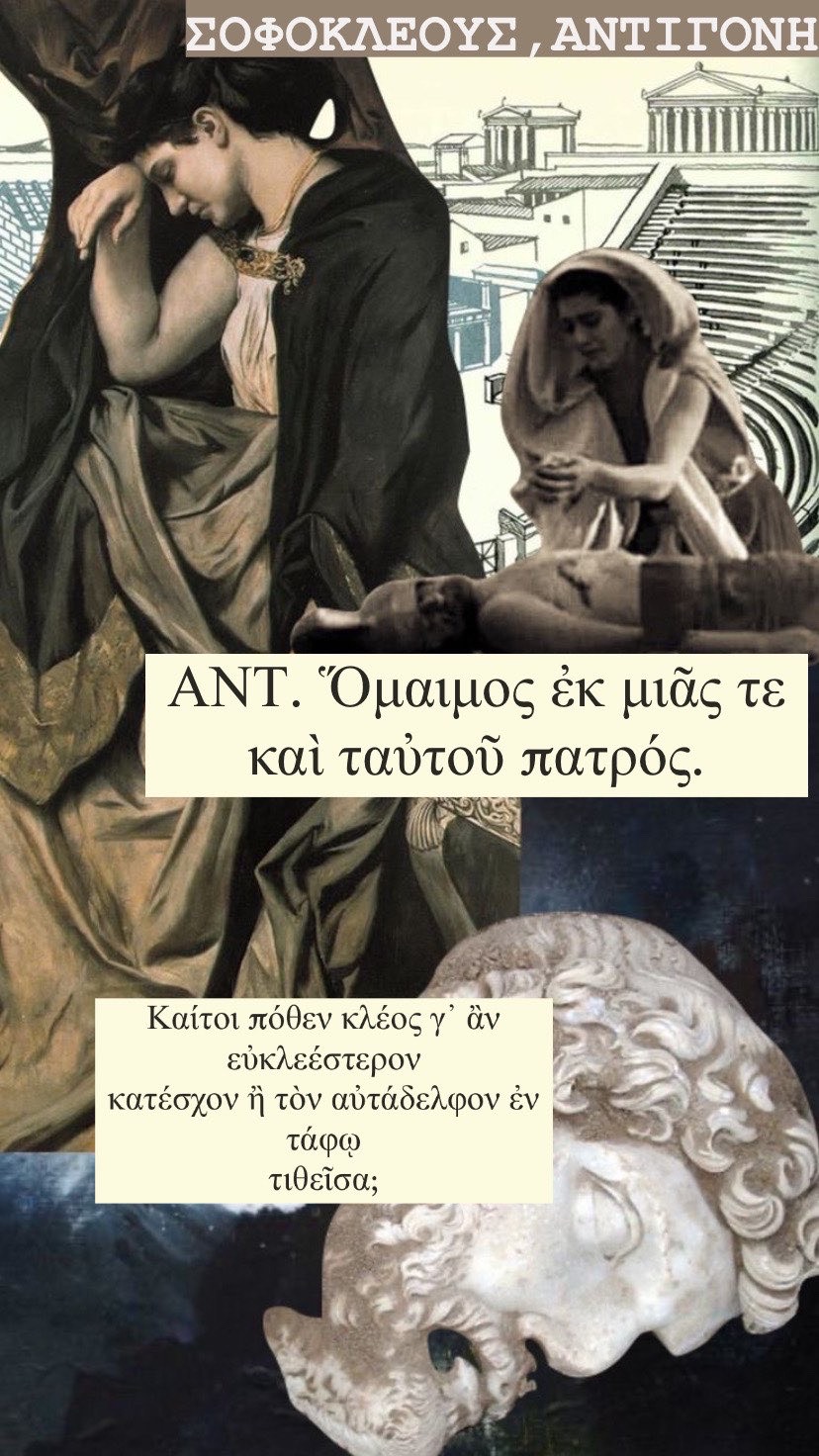 Παρακάτω θα δείτε αντιπροσωπευτικές εργασίες από τους μαθητές/τις μαθήτριες: Ντενάντα Αλλιάι, Απεικόνιση του Κρέοντα με ΑΙ, Παναγιώτης Γερογιάννης και Αντρέας Ζευγολατάκος, Ομιλία για την Ύβρι σε συνέδριο, Ιωάννα Βαλκανά και Γιώργος Δημάκης, Ομιλία στην Εκκλησία του Δήμου, Εύα Γκιούση και Λάουρα Βελίαση, Συνέντευξη με τον Κρέοντα, Βασιλική Ευθυμίου και Νίκος Γεροκωνσταντής, Κολάζ με θέμα την Αντιγόνη του Σοφοκλή, Ιωάννα Βαλκανά και Γιώργος Δημάκης, Διάλογος μεταξύ των φυλάκων.