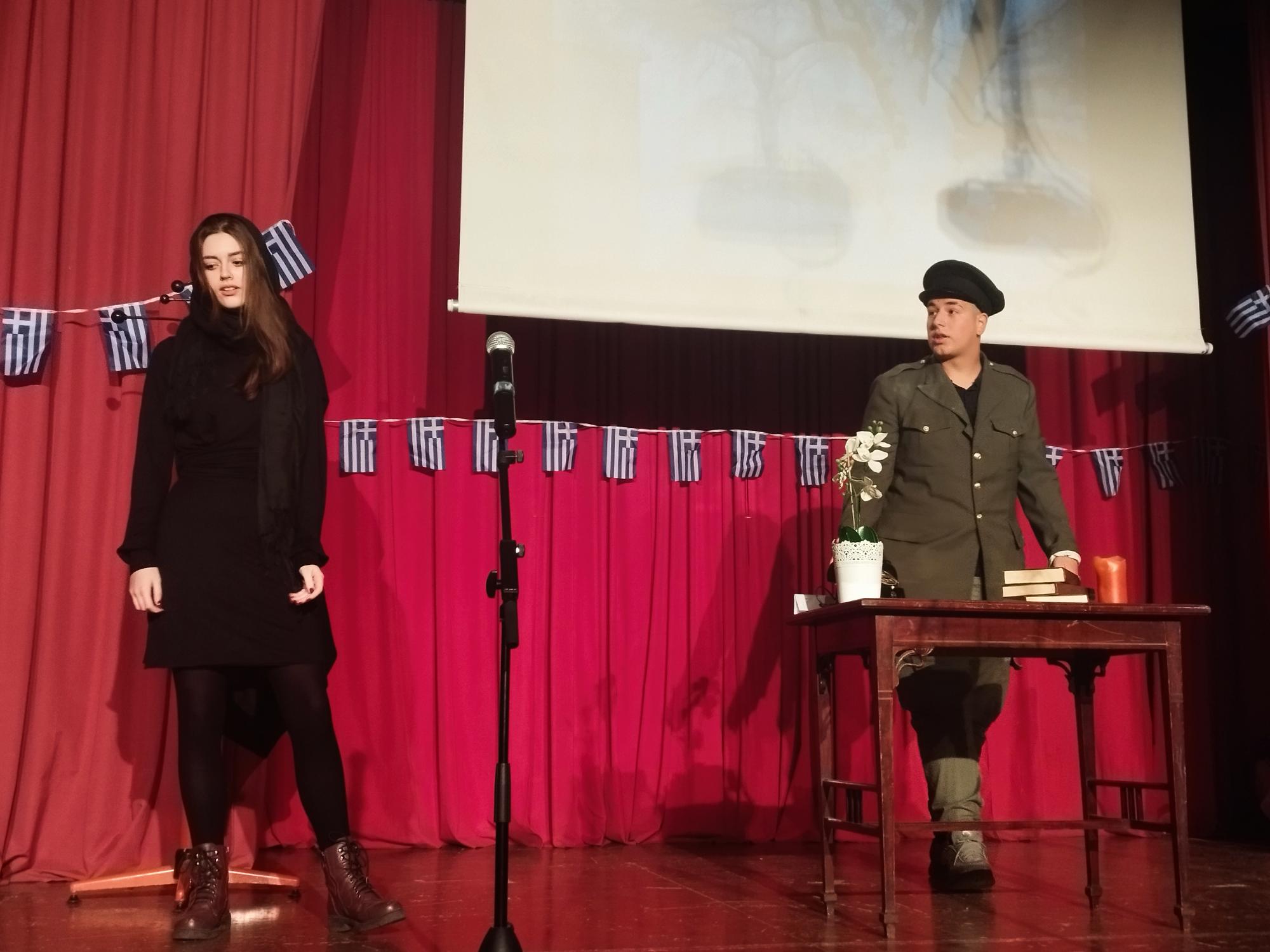 Μέσα από αφηγήσεις, ποιήματα, θεατρικά δρώμενα, μουσικά κομμάτια και τραγούδια της εποχής, οι μαθητές/μαθήτριες αναβίωσαν τα ιστορικά γεγονότα και ανέδειξαν τα ιδανικά της ελευθερίας, της ειρήνης και της εθνικής αξιοπρέπειας.