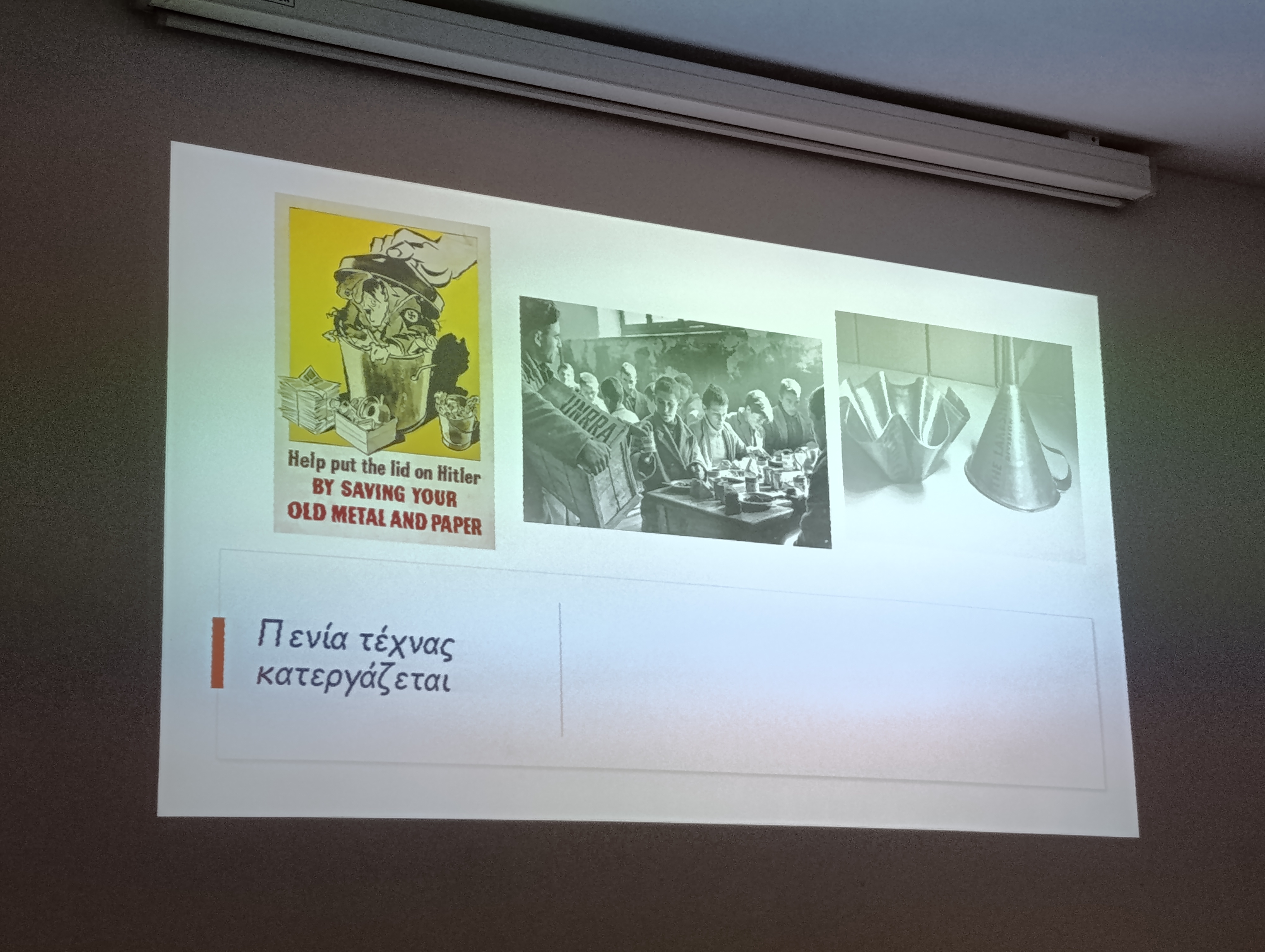 Στο πλαίσιο του προγράμματος είχαν την ευκαιρία να εξοικειωθούν με την έννοια και την πρακτική της επανάχρησης υλικών και αντικειμένων. Η αρχή «Πενία τέχνας κατεργάζεται» αξιολογήθηκε σε μία ποικιλία ιστορικών παραδειγμάτων από την αρχαία Ελλάδα (Θεμιστόκλεια τείχη), τον Β Παγκόσμιο Πόλεμο, μέχρι και τη σύγχρονη καθημερινότητα, όπου η ανθρώπινη ευρηματικότητα μετασχηματίζει το «ελάχιστο» και φαινομενικά «άχρηστο» σε σχέση με την αρχική του αξιοποίηση, σε «μέγα» και «αναζωοδοτημένο» στο πλαίσιο μιας νέας ανάγκης.