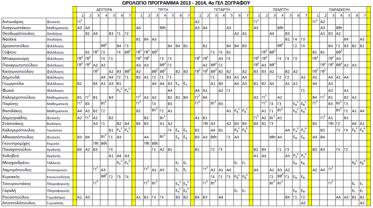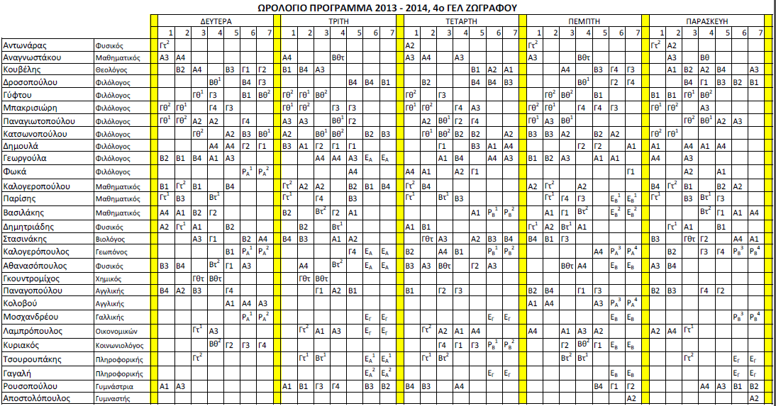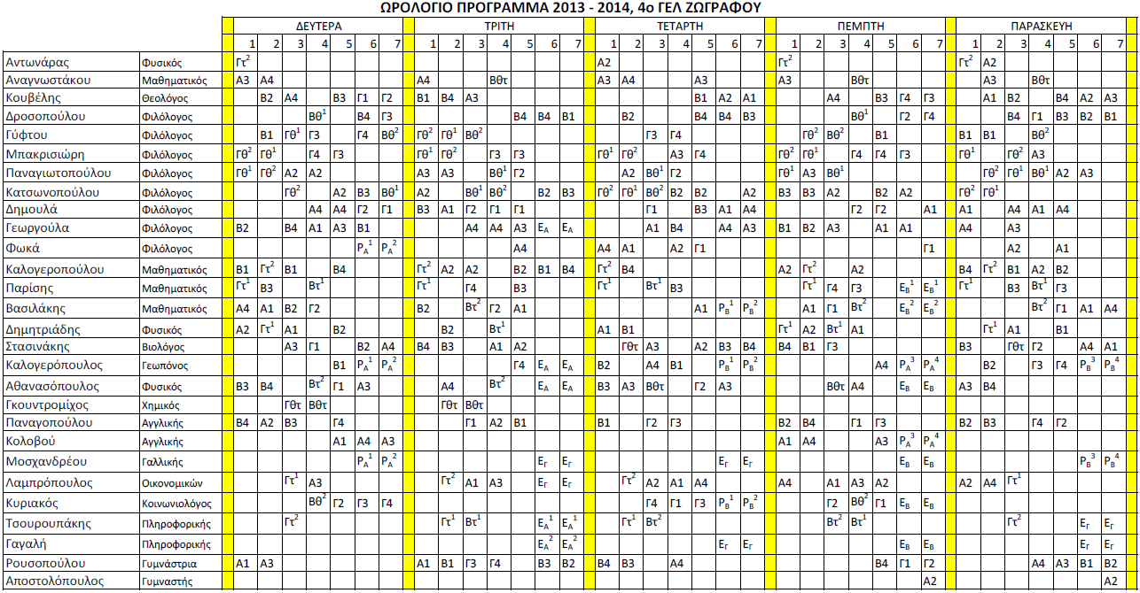 Το ωρολόγιο πρόγραμμα του σχολείου μας που ισχύει από τις 24 Φεβρουαρίου 2014.